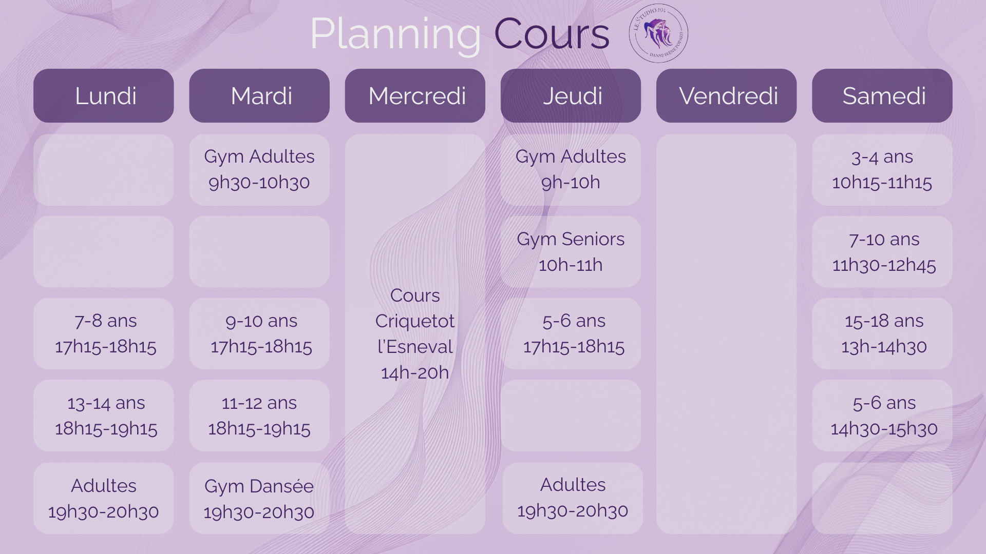 Au Havre, l’école de danse Le Studio 104 propose des cours de danse pour les enfants à partir de 3 ans, les ados, les adultes et les seniors. Que vous soyez à la recherche d’un loisir culturel ou d’une activité physique, vous trouverez dans les cours dispensés au Studio 104, une ouverture vers les arts, une meilleure forme physique et une hygiène de vie épanouissante.